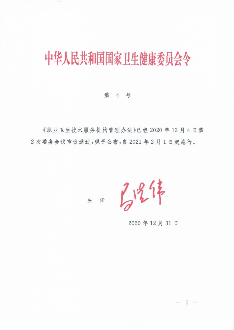 職業(yè)衛(wèi)生技術(shù)服務(wù)機(jī)構(gòu)管理辦法(國家衛(wèi)生健康委令第4號(hào))